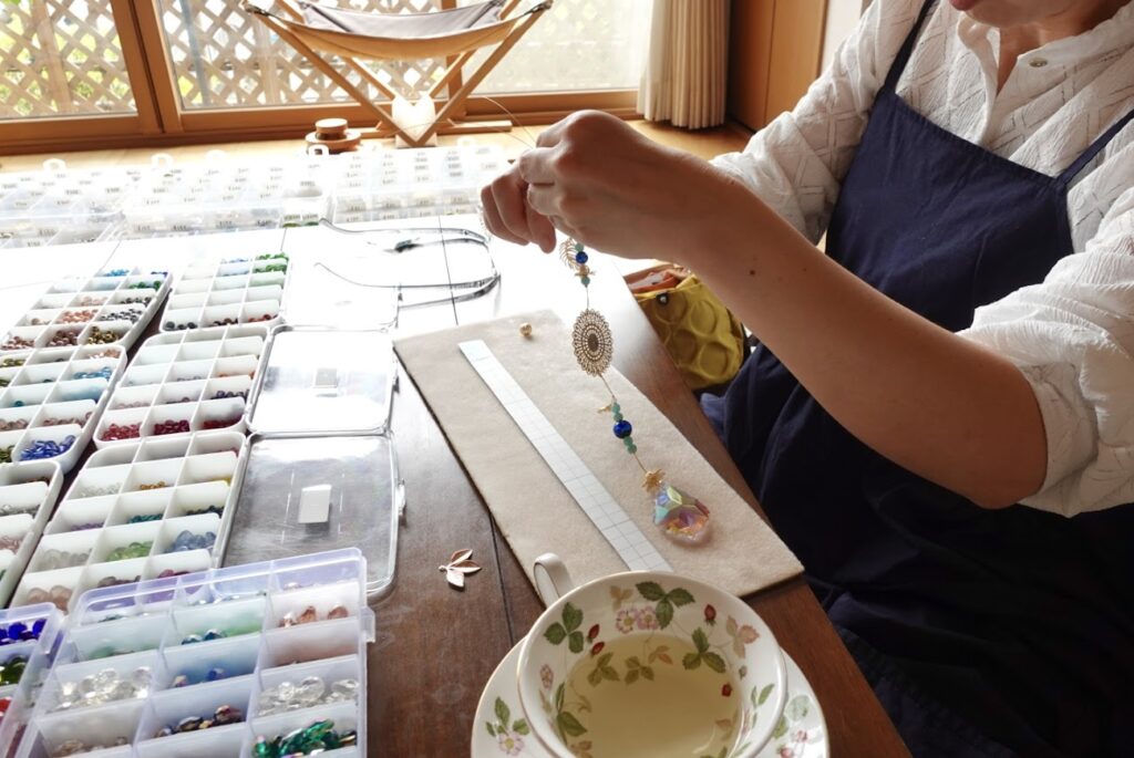 ずっとやりたかったサンキャッチャー作りを大好きな二人と好きなパーツ、色味で作れたことに大満足です。
