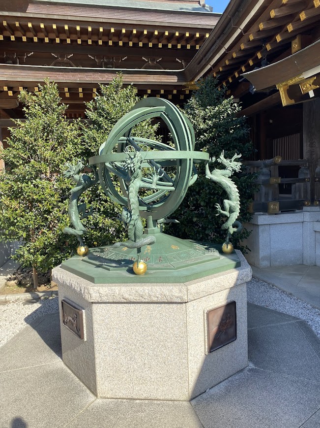 拝殿の右側にあったこちらのオブジェ(って呼んでいいのか?)は、渾天儀(こんてんぎ)と呼ばれる天体の位置や星などを観測する器具だそう。