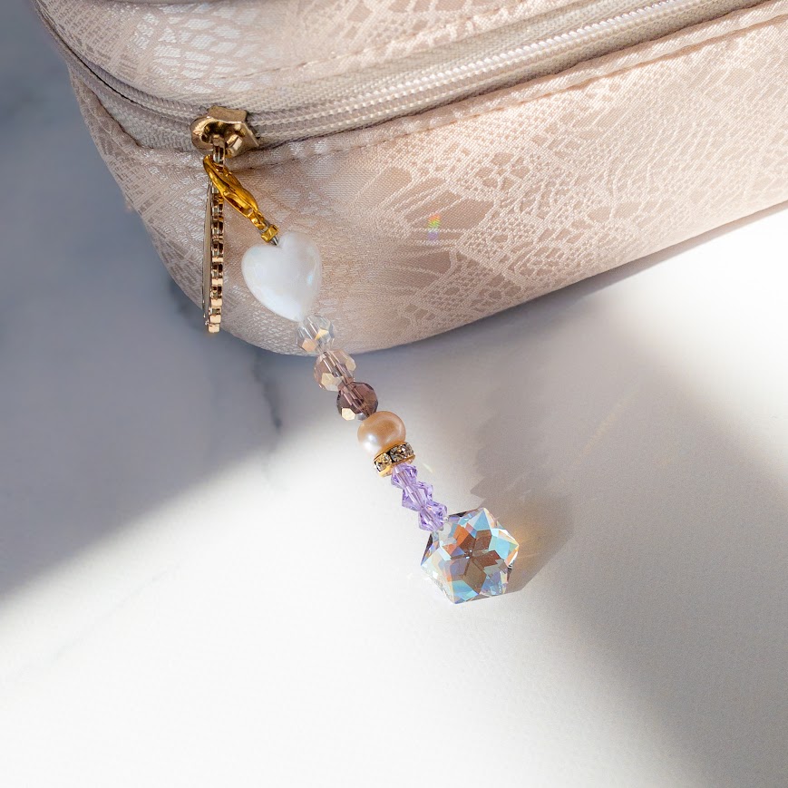 そのためにも、サンキャッチャーに使用するガラスパーツの素材にはこだわっていて、クリスタルガラスの中でも最高グレードの酸化鉛を30%以上含む「フルレッドクリスタル」と呼ばれるガラスのみ使っています。