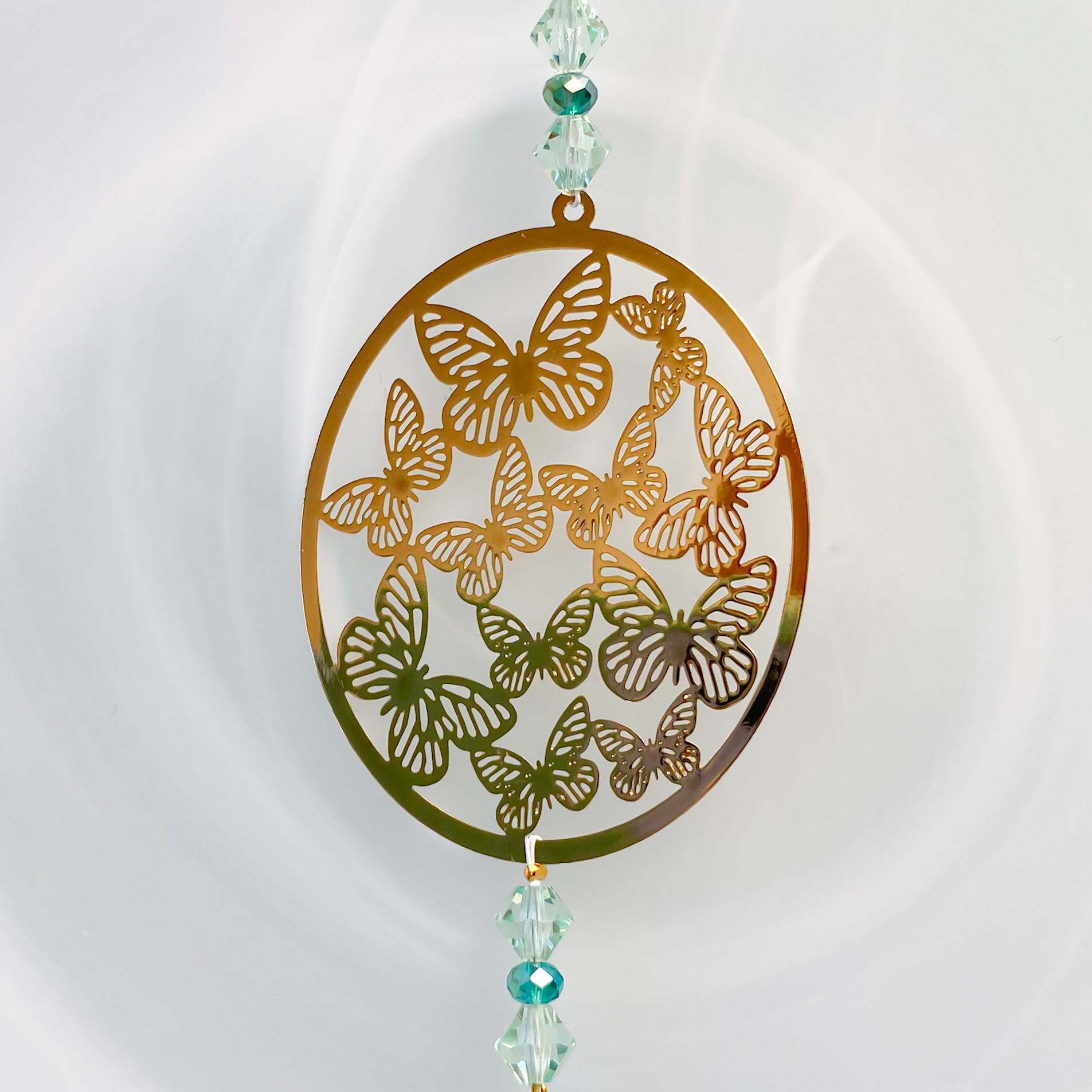 ■大地のエネルギー*珪化木と蝶のグリーンサンキャッチャー